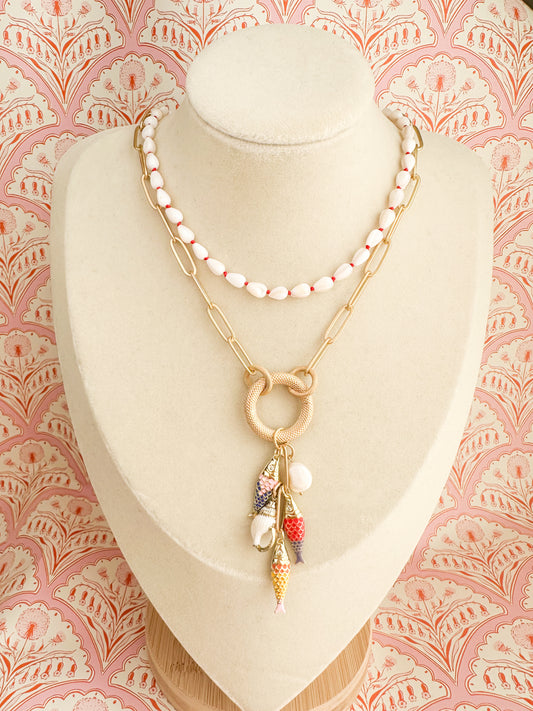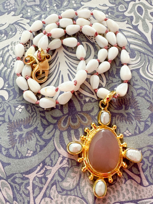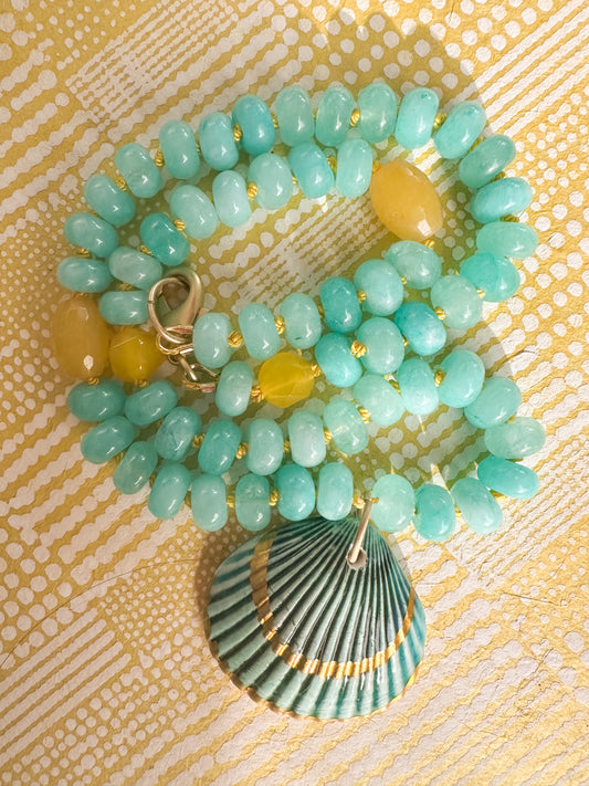 Aqua and Cream Jade Necklace with Vintage Heart Charm-Piper