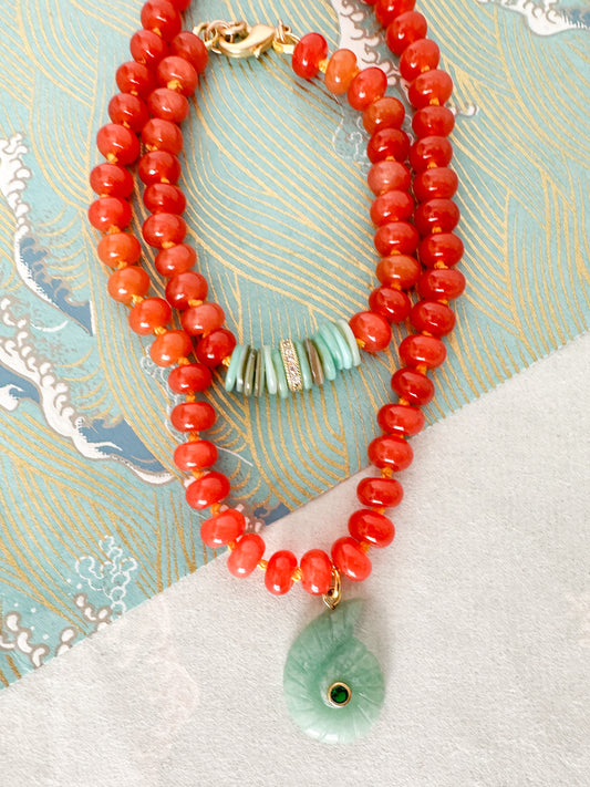 Ainsley-Green Jade Necklace with Gemstone Pendant