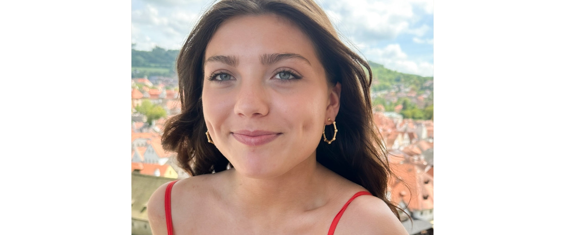 Our model Lilly is wearing the Betsy Matte Gold Hoops.