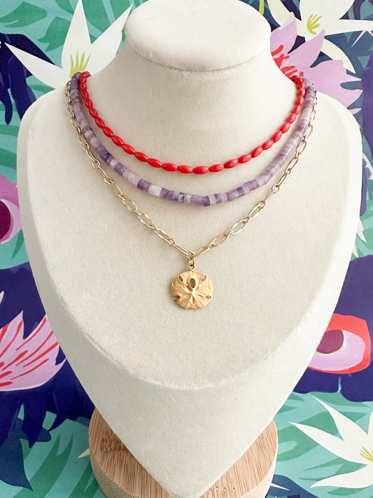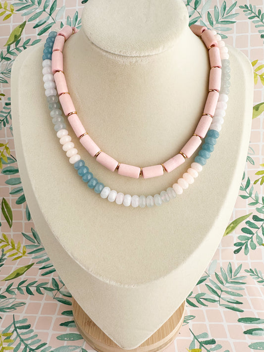 Kauai Necklace-Pink Wooden Tube with Gold Discs