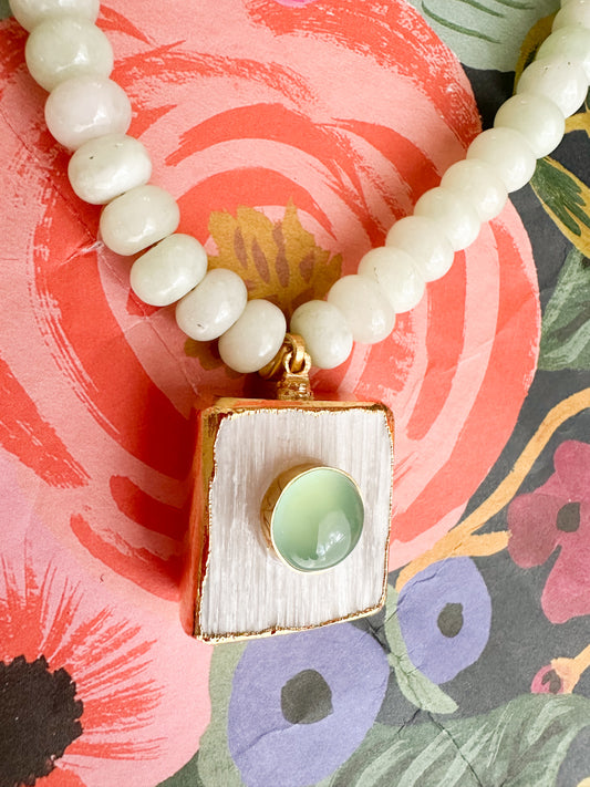 Fair Trade Stone Green Saucer Necklace-Abigail