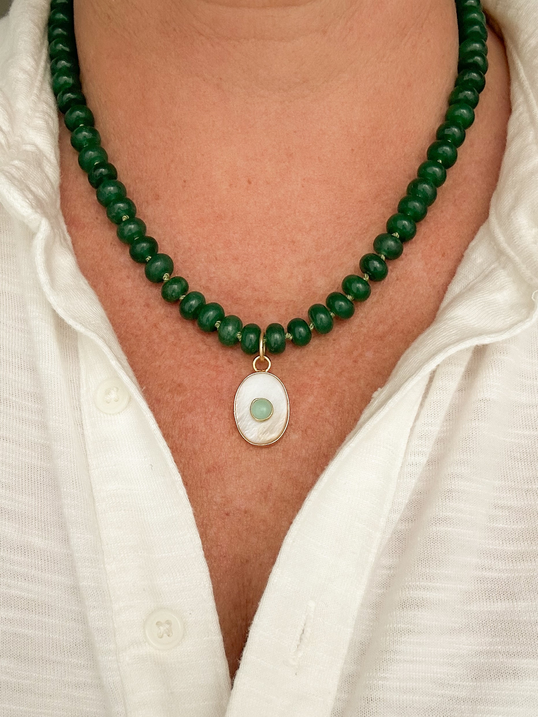 Ainsley-Green Jade Necklace with Gemstone Pendant