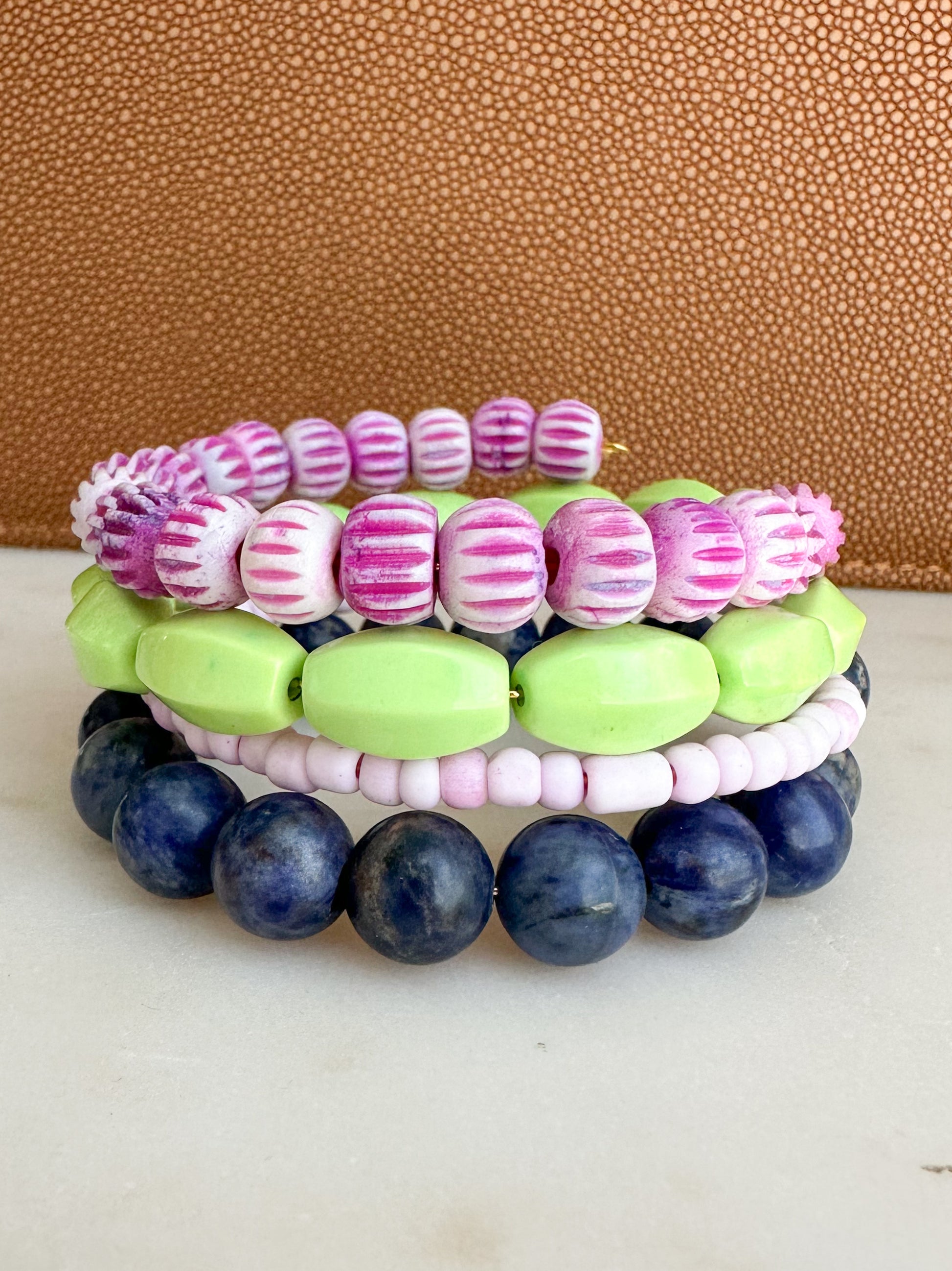 Wraparound Bracelet with Wooden Beads and Gemstones.